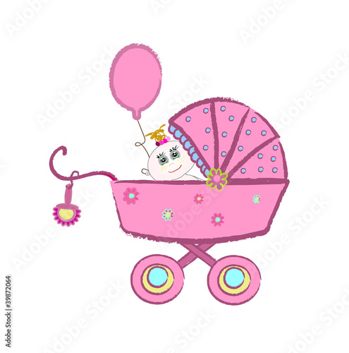 Kočárek vektorové kočárek dítě kočárek karikatura ikona. Perambulator vozík pro narozené dítě dítě izolovaných na bílém pozadí