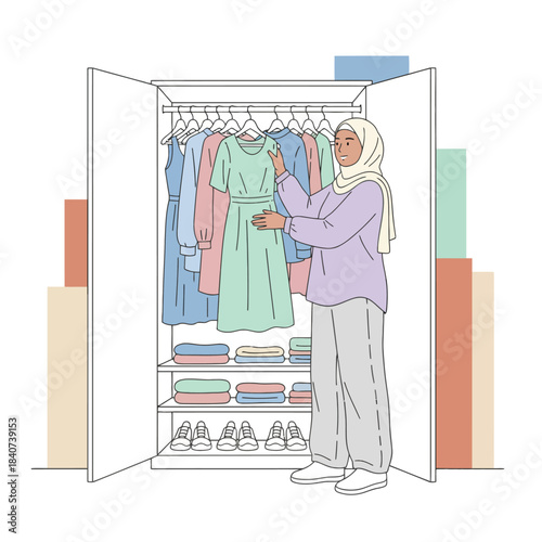 Vektorová ilustrace mladé matky, která mění pleny a otáčí své novorozené dítě. Péče o děti koncept plochý styl designový prvek.