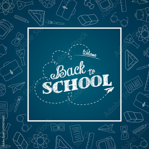 Zpátky do školy křídová deska. Sada školních čmáranic na hnědém pozadí. Vektorové Ilustrace.