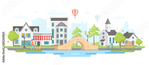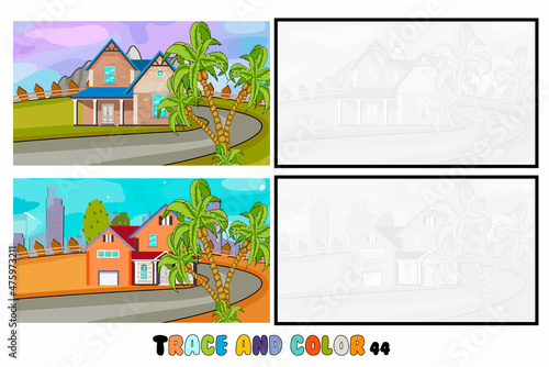 Zpět na školní koncept vektorový plakát. Školní autobus s budovou a tabulí na pozadí. Městská základní a Střední škola. Vzdělání banner v plochém kresleném stylu.