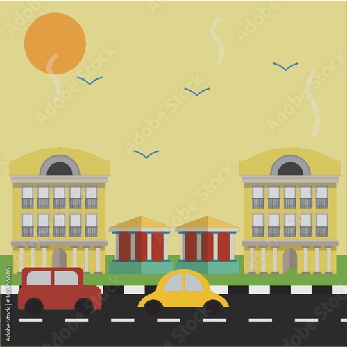 Zpět na školní koncept vektorový plakát. Školní autobus s budovou a tabulí na pozadí. Městská základní a Střední škola. Vzdělání banner v plochém kresleném stylu.