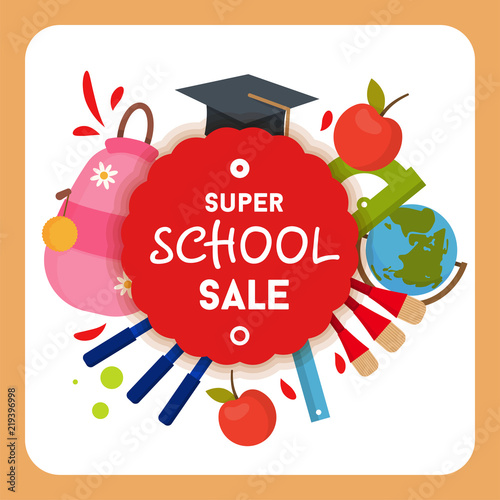 Zpět na školní papír art style vector design. Plakát s papírovým jablkem a studijními potřebami. Koncept online vzdělávání a e-learningu. Uvítací a uvítací banner pro reklamu a propagaci