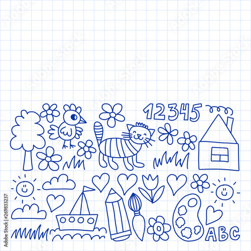 Zpět na školní papír řez umění vektor. Stolní lampa s písmenem abc, matematika, fyzikální, geometrický, chemický, trigonometrický vzorec na tabuli trojrozměrný design vrstvy ilustrace