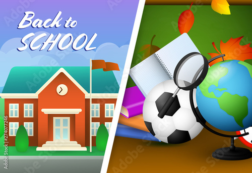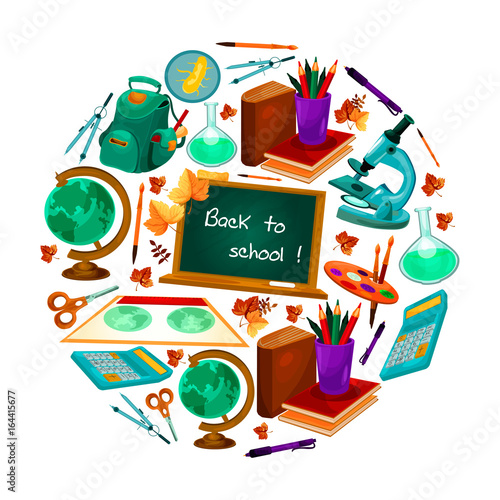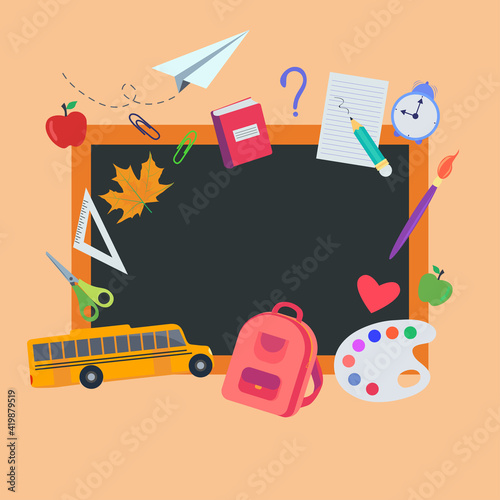 Zpět do školy papercut vector. Podzimní javor lesní pozadí se vzdělávacími doplňky. Koncept prvního zářijového Dne znalostí