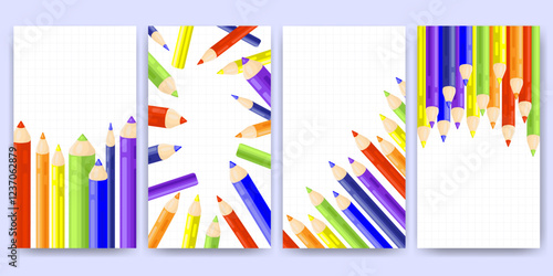 Zpět do školy horizontální banner šablony set. Vektorové ilustrace školních potřeb na sešitu list a tabule pozadí. Školní čas, koncepce vzdělávání.