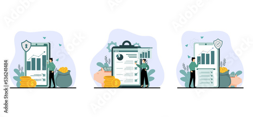 Pekárna továrna koncept vektorové ploché ilustrace. Vývojový diagram procesu výroby chleba používaný v průmyslové pekárně. Tři kroky výroby chleba od mletí mouky po pečené bochníky čerstvého chleba.
