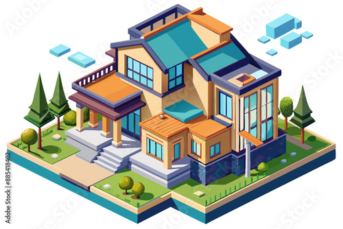 Vnější vektor budovy banky. Ikona kanceláře finanční instituce. 3D izometrický design izolovaných na bílém pozadí