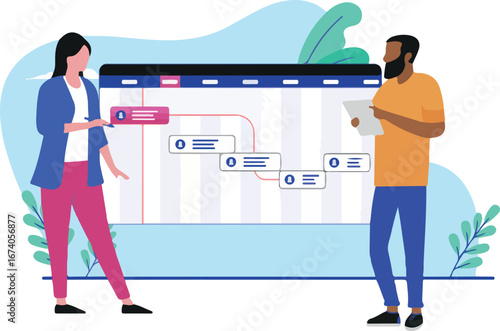 Vektorové ilustrace podnikatelů muž a žena zavírání trezor s klíčem. Úspory a Bankovní bezpečnostní koncept plochý styl designu.