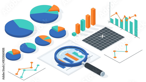 Zpracování bankovních úvěrů izometrický vývojový diagram, infografika, plochá vektorová ilustrace. Kreditní bodovací systém, osobní kreditní rating symboly, věřitel a zákazník kreslené postavičky setkání.