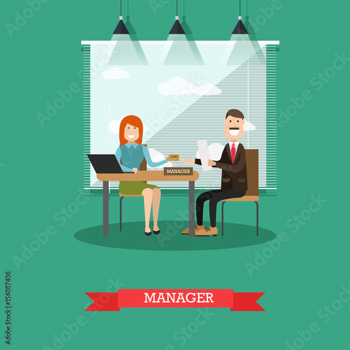 Vektorové ilustrace bankovního manažera žena dává kreditní kartu zákazníkovi muž. Bankovní služby concept designový prvek v plochém stylu.