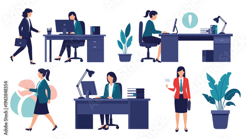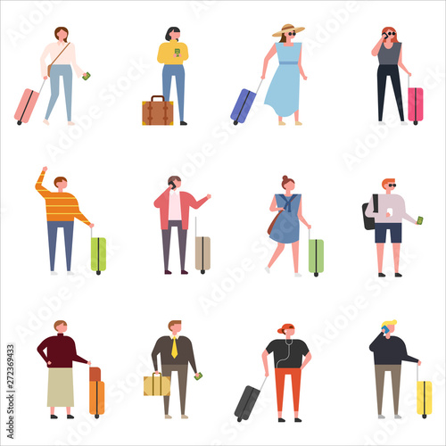 Bankovní lidé vektorová ikona set s bankovním pokladníkem, manažery, zástupci zákaznického servisu, ozbrojenými sběrateli, ostrahou, zákazníky čekajícími ve frontě u pokladny a bankomatu. Ploché designové prvky.