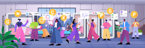 Banka velkými písmeny, klient muž dává dolarovou bankovku bankovní pokladní ženě, vektorový plochý design ilustrace. Bankovní služby, koncept pokladny.
