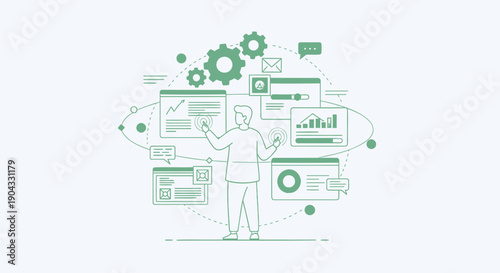 Šablona webových stránek Bank vector, design webových stránek a vstupních stránek pro vývoj webových stránek a mobilních stránek. Ruční držení dolarových bankovek, notebook s mapou světa na obrazovce, pin pad, taška na peníze, peněženka, bankomat.