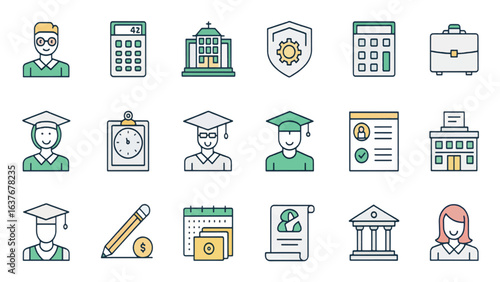 Vektorový bezproblémový vzor se symboly bankovních financí, ikonami. Bankovní pozadí, balicí papír textura tenká linie umění plochý styl designu.
