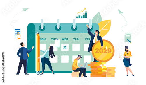 Bankovní budova, mužské a ženské postavy pracovník, klienti, peníze, vektorový plochý design ilustrace. Bankovnictví a finance, spolehlivé úspory peněz, bankovní vklady, investice, koncepty půjček.