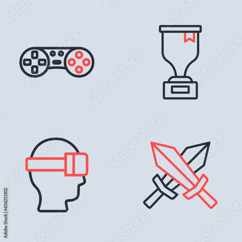 Barber soutěž logo, znak sada s gold trophy award, kadeřnictví nástroje, vektorové ilustrace izolovaných na bílém pozadí. Barber battle show Festivalové štítky.