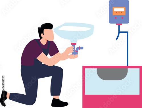 Vektorové ilustrace holič holení vousatý muž s břitvou. Holičství plochý styl designový prvek.
