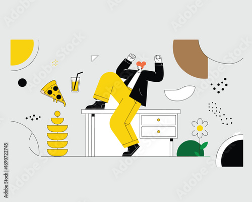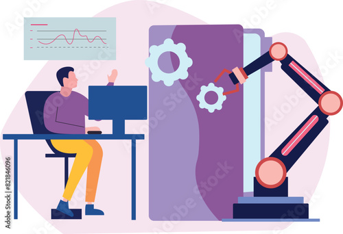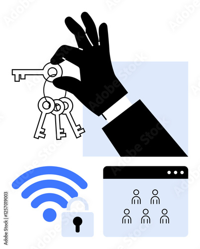Vektorová ilustrace malých postav s velkými holičskými potřebami pro stroj na holení vousů, holení po holení, holicí kartáč s pěnou, nůžky. Holičství koncept pro web banner atd.