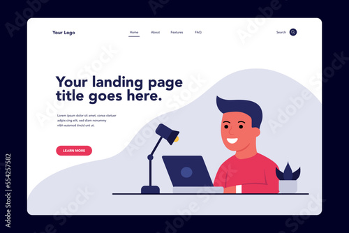 Barista making coffee vector website template, design webové stránky a vstupní stránky pro vývoj webových stránek a mobilních stránek. Barman příprava kávy nápoj stojící ar Barový pult.