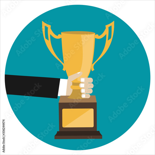 Realistický zlatý pohár šampionů, baseballová rukavice, helma, míč a pálka na bílém kulatém pódiu vítězů, vektorové ilustrace. Baseball sport game championship trophy, cena.