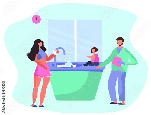 Bbq party s přáteli, ploché vektorové ilustrace. Lidé vaří maso, klobásy na grilu, pijí pivo a baví se. Venkovní grilování piknik, letní volnočasové aktivity.