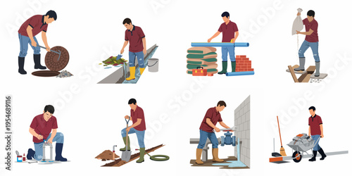 Pláž plavčík charakter ploché vektorové ilustrace. Vodní záchranná služba. Záchranář v práci plavání na lodi, záchrana života ženy a muže, držení lékárničky nebo bóje
