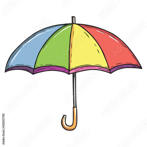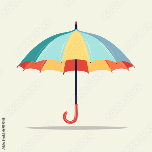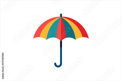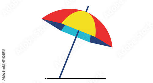 Plážový deštník vektor. Ikona slunečníku. Letní pruhované příslušenství pro sluneční clonu, bezpečnostní opalování, ochrana před slunečním zářením. Objekt pro letní volný čas a relaxaci na tropickém pobřeží izolované