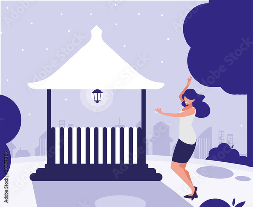 Krásná baletka tančí na jevišti. Vektorové ilustrace v papírové umění řemesla stylu. Klasické siluety baletních tanečníků. Baletní představení.