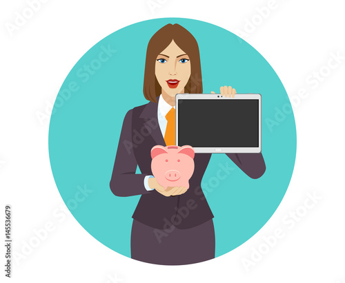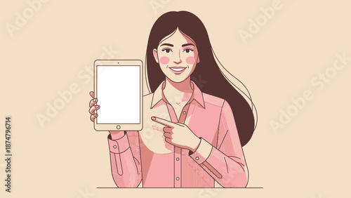Krásná žena s chytrý telefon komické pop art vektorové ilustrace. Dívka s řečovou bublinou držící v ruce velký smartphone.