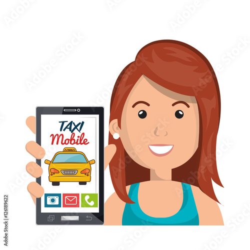 Krásná žena s chytrý telefon komické pop art vektorové ilustrace. Dívka s řečovou bublinou držící v ruce velký smartphone.