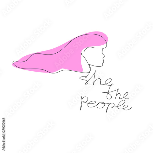 Krásná dívka s dlouhými vlnitými vlasy. Vektorové ilustrace v moderním papírovém uměleckém stylu. Krása a kadeřnictví logo, vizitka design šablony.