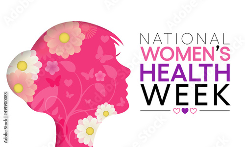 Krásná žena portrét s dlouhými vlnitými květinovými vlasy, vektorové ilustrace v moderním papírovém uměleckém stylu. Logo kadeřnictví, šablona vizitky. Krása a móda, koncept účesů.