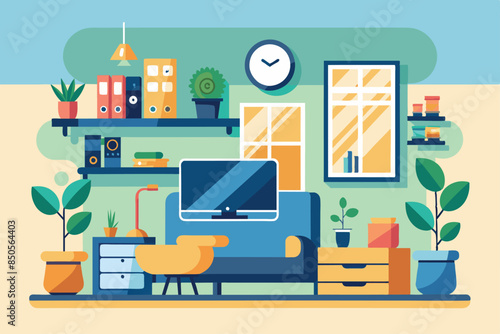 Salon krásy interiér vector concept bannery. Kadeřnické studio. Stříhání ateliéru. Ilustrace v plochém kresleném stylu.