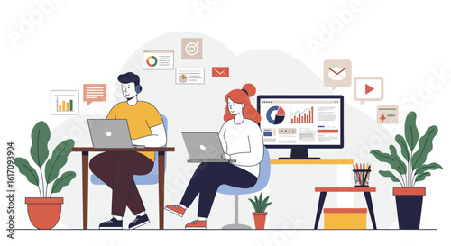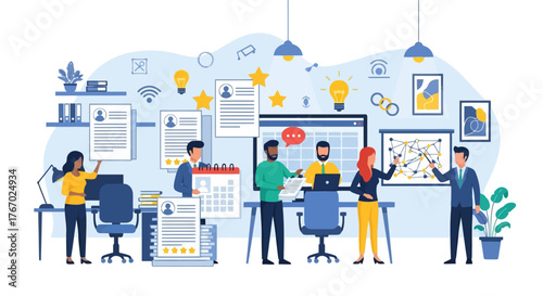Salon krásy interiér vector concept bannery. Ženy v manikúru a tvoří design studio. Ilustrace v plochém kresleném stylu.
