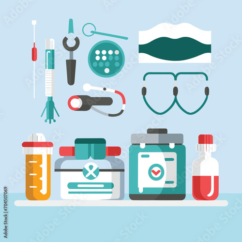 Beauty saloon vector plochý styl designu ilustrace. Zrcadlo, vysoušeč vlasů, nůžky, šampon, lak na nehty, krémová trubice. Koncept služeb kosmetického salonu a kadeřnictví pro webový banner, webovou stránku atd.
