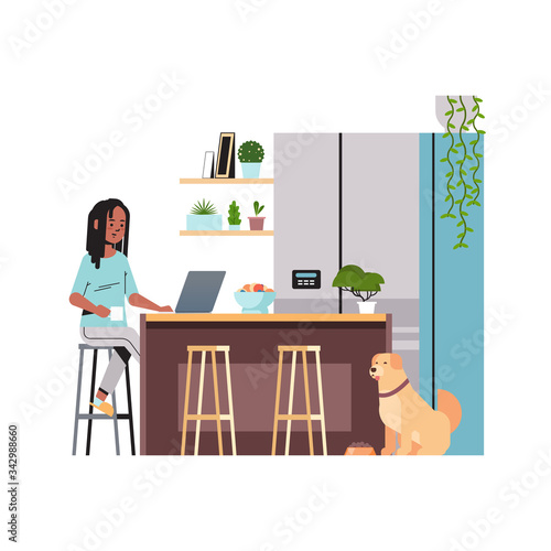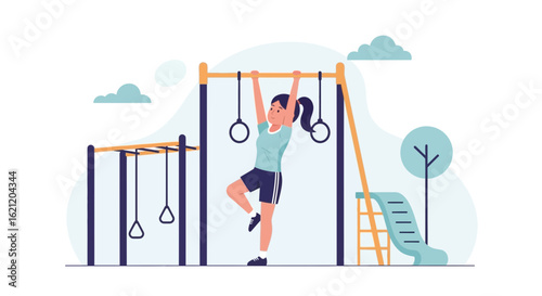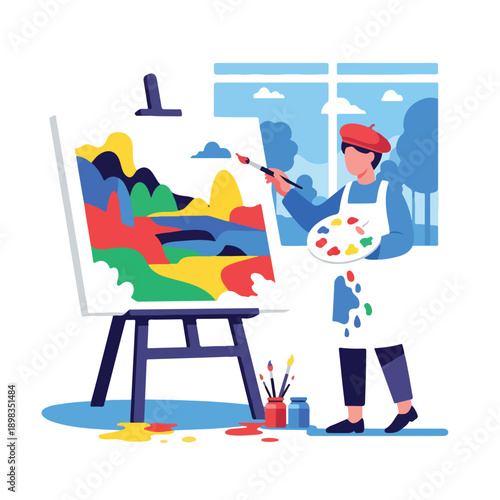 Interiér ložnice a dívka spí v posteli u okna, vektorová plochá ilustrace. Útulná žena Ložnice s nábytkem a dekorací, moderní domácí interiér.