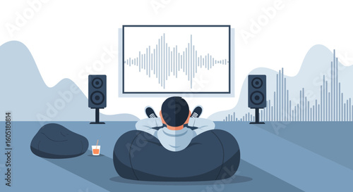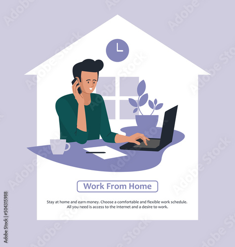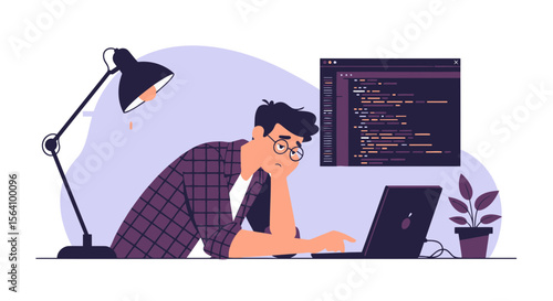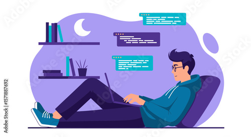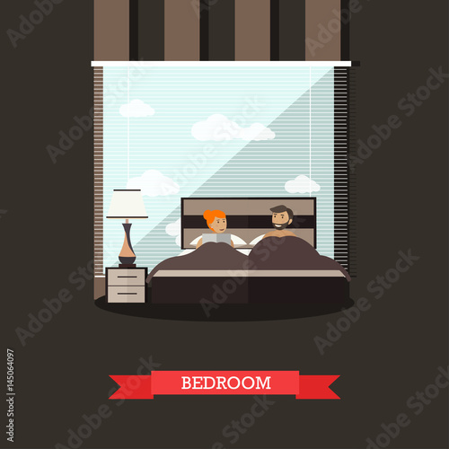 Vektorová ilustrace mladého páru, který odpočívá v posteli. Interiér domácí ložnice. Plochý design.