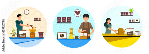 Včelaři pracující v honey production garden vector set. Hivers a včeláři sbírají přírodní včelí sirup na včelín, farmář prodává čerstvý sladký organický produkt ilustrace