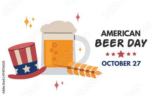 Pivní festival vektorové ploché ilustrace. Sud a hrnek piva, pšeničné uši, chmel, solené sušené ryby, uzávěr láhve a otvírák. Koncept oslavy Oktoberfestu pro webový banner, webová stránka atd.