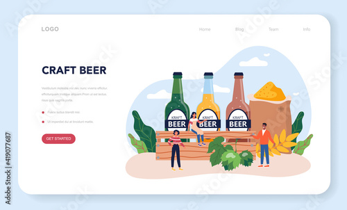 Šablona vstupní stránky piva. Koncept designu vektorového plochého stylu pro pivní festival, večírek, Web Oktoberfest a vývoj mobilních stránek. Pivo s humrem a preclíkem.