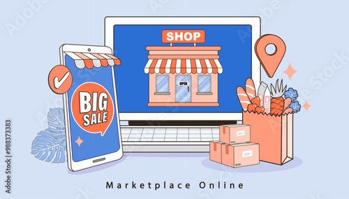 Obchod s pivem, pivovar, ploché vektorové ilustrace. Craft Pivní lahve na policích vitríny. Prodavač stojí u pultu. Supermarket, obchod s potravinami pivní sekce. Maloobchod malé firmy.