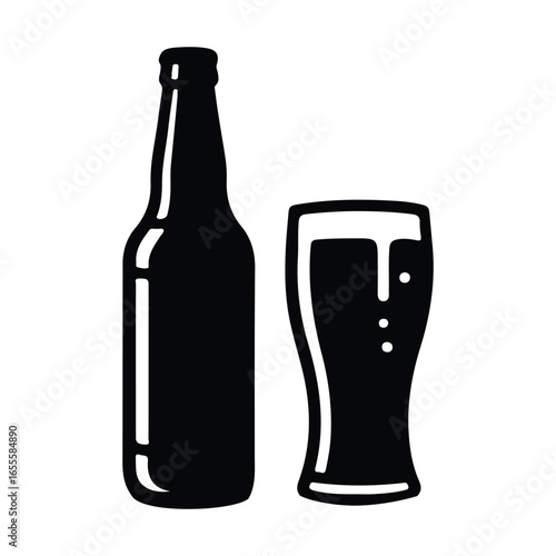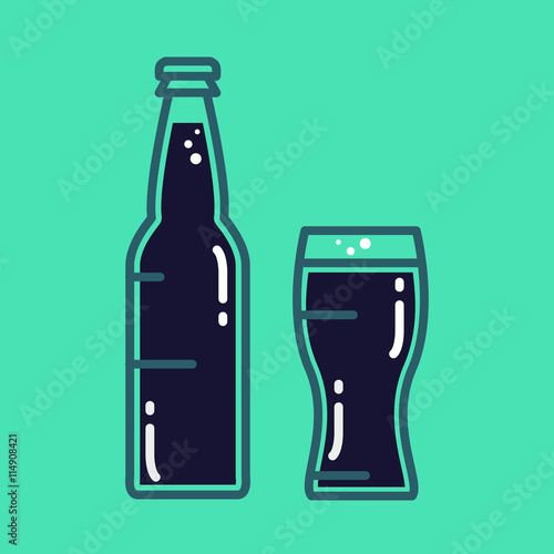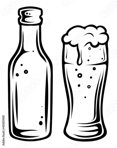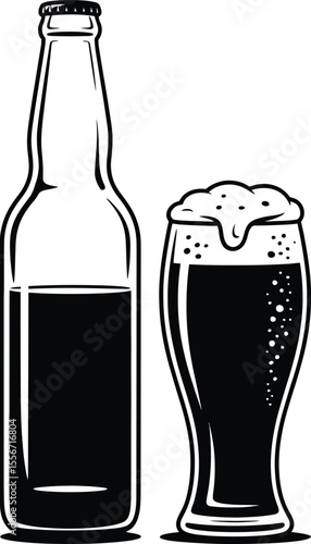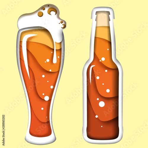 Pivní láhev a hrnek s pěnou, vektorové ilustrace v papírovém umění moderního řemeslného stylu. Kreativní složení piva pro pivovar, pivní festival, menu, plakát, banner atd