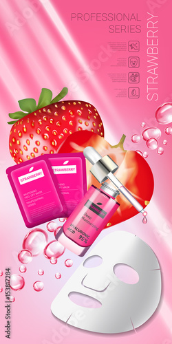 Berry žvýkačky reklamy šablony, vektorové ilustrace. Bílá prázdná podložka a deska bubble gum balíček maketa, papír řezané ruspberries, jahody, borůvky a žvýkačky.