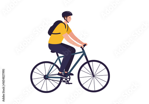 Doručovatel kurýr na kole s červenou kartonovou krabicí. Vektorový plochý design ilustrace izolované na bílém pozadí. Koncept služeb dodávek jízdních kol pro webový banner, webovou stránku atd.