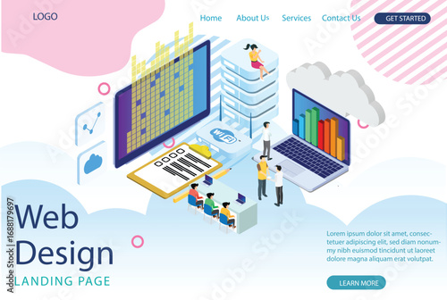 Šablona webové stránky online obchodu s jízdními koly. Vektorové izometrické ilustrace člověka dělá nakupování přes smartphone. Online nakupování, koncept elektronického obchodování.