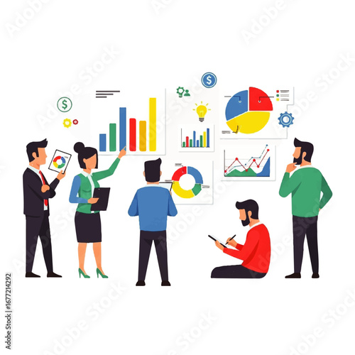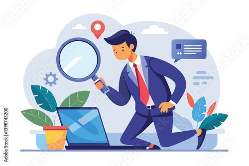 Vektorová šablona webových stránek pro analýzu velkých dat, design webových stránek a vstupních stránek pro vývoj webových stránek a mobilních stránek. Podnikatel při pohledu na graf na dlani s lupou. Koncept správy dat.