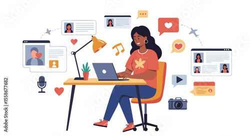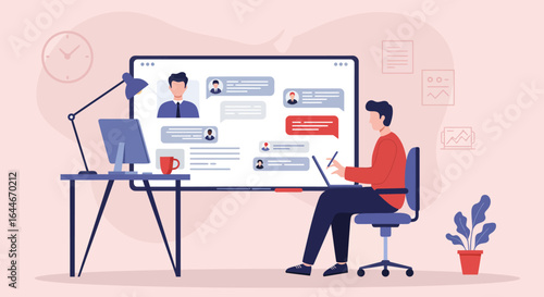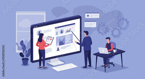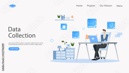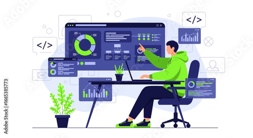 Big data technologie pro digitální profil vektorové ilustrace. Analýza a předpovídání velkých dat v konceptu digitálního marketingu s sloupcovými výsečovými grafy, diagramy, znakem pro webový banner, webovou stránku atd.