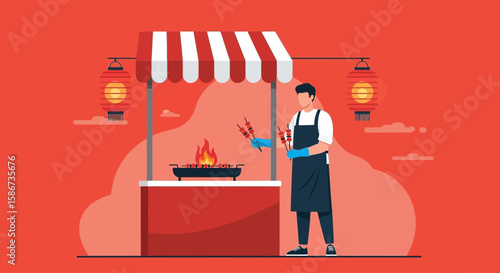 Vektorová ilustrace konceptu biologie v plochém stylu. Interiér biologické laboratoře s laboratorním sklem a zařízením. Biolog žena provádění experimentu.