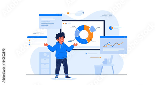 Biometrické rozpoznávání obličeje cctv tech vector. Infografika kontroly osobní bezpečnosti. Cctv kamera poskytuje video dohled