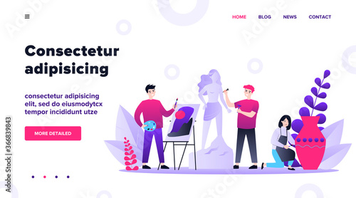 Biotechnologie, vektorové ploché ilustrace. Skupina vědců, laboratorní technici na sobě bílé pláště Testování DNA, Zkoumání buněčných kultur a sestřih genů. Koncept biotechnologické laboratoře.